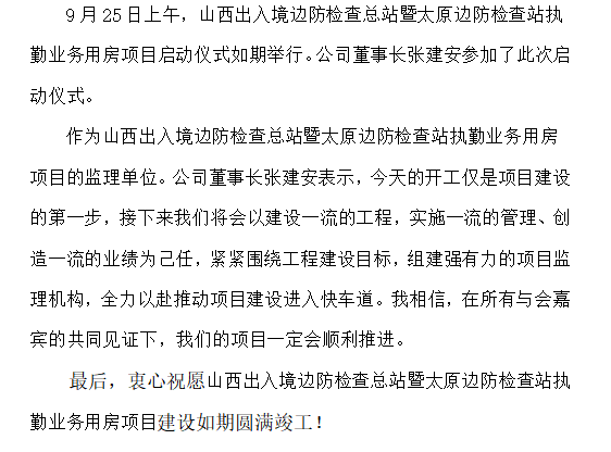 公司董事长张建安应邀参加“山西出入境边防检查总站暨太原边防检查站执勤业务用房”项目启动仪式