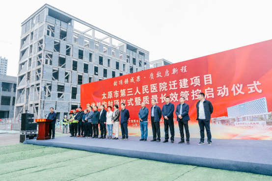 封项铸成果·质效启新程丨太原市第三人民医院迁建项目主体结构封顶仪式暨质量长效管控启动仪式